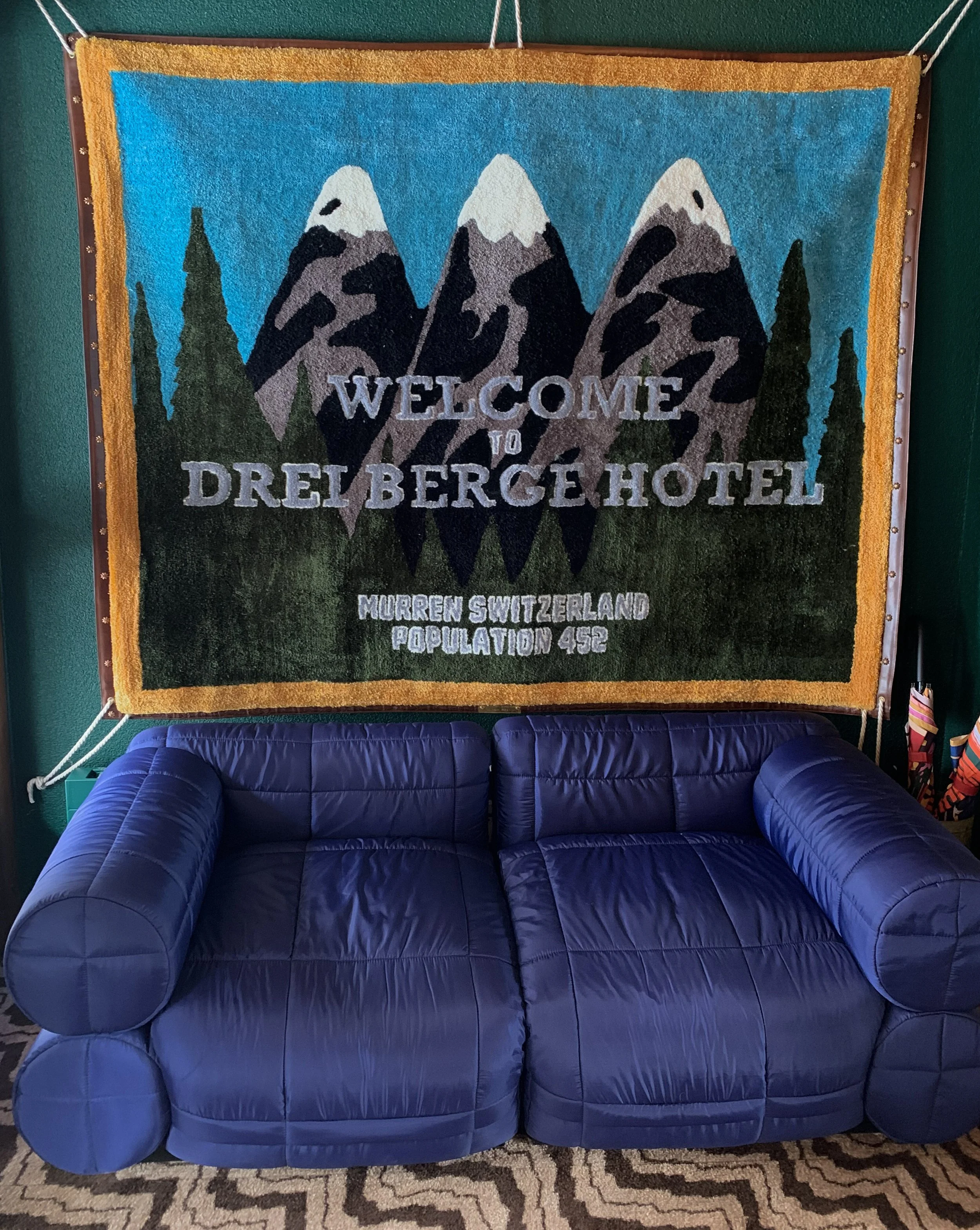The lounge is particularly inviting: funky rugs, red and orange designer couches with views of the views of the Eiger, Mönch and Jungfrau, carefully curated coffee table books, rows of magazines and newspapers for long reading sessions, and oversized speakers playing an easy rotation of good music. Since they kindly let you order food here, I would often order a burger and sit.